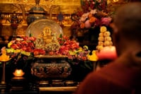 纵能以种种珍宝,四事供养圣人,其福德虽然很多,尚不如有人以诚敬心皈依三宝所得的功德来的大。何以故呢?因一切供养自然感得人天福报,那皈依三宝指向成佛的目标乃是无为无漏的功德,这两者是有天渊之别的。